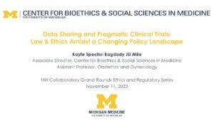 Data Sharing and Pragmatic Clinical Trials: Law & Ethics Amidst a Changing Policy Landscape (Stephanie Morain, PhD, MPH; Kayte Spector-Bagdady, JD, MBioethics)
