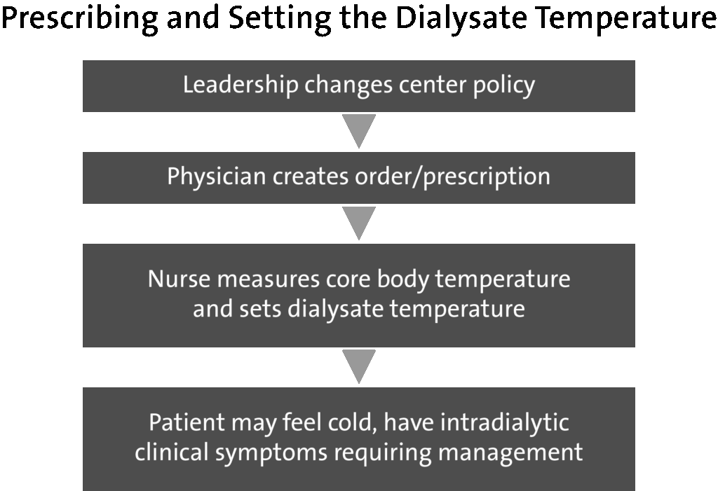 However, because the Trial 2 protocol became the new clinic policy, there was a need to clearly prescribe and set the dialysate temperature. Also, complex roles and social influences on the process of using a personalized dialysate temperature needed to be assessed.