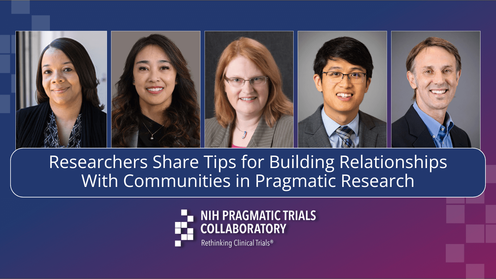 The panelists included Jennifer Kawi, principal investigator (PI) for APA-SM; Kathleen Sluka, PI for FM-TIPS; Sebastian Tong, PI for AIM-CP; and David Wetter, PI for LungSMART. They shared examples of how community relationships have enriched their trials, along with impediments to meaningful community engagement and successful methods for building relationships with communities.