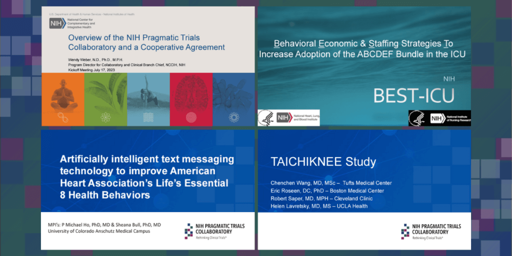 Leaders of the NIH Pragmatic Trials Collaboratory hosted an onboarding meeting for the program's 3 newest NIH Collaboratory Trials. The projects joined the program under the UG3 cooperative agreement mechanism to support a 1-year planning phase in preparation for potential transition to a UH3 implementation phase.